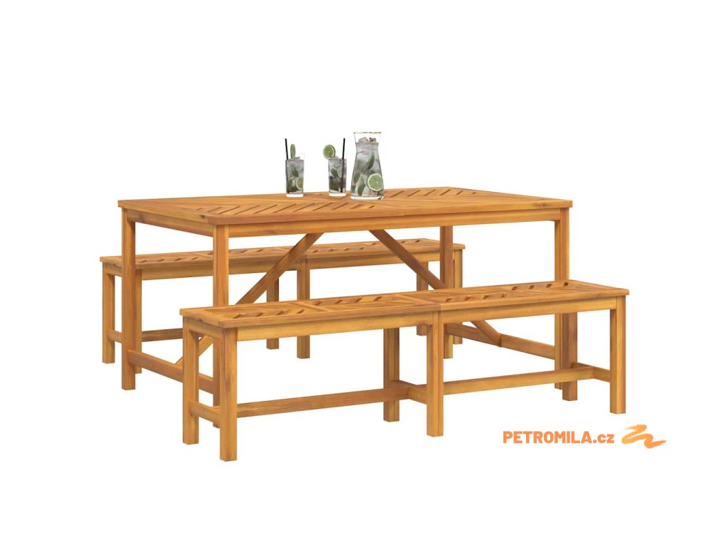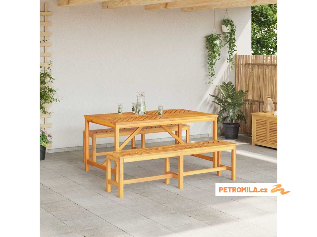 - Kvalitní materiály: Vyrobeno z masivního akáciového dřeva, tenhle set je pevný a vypadá skvěle. Akácie je známá svojí krásnou strukturou a zvládá různé venkovní podmínky, což ji dělá ideální pro každodenní používání. Tento materiál dodává rustikální nádech, ale je dostatečně odolný pro venkovní využití.