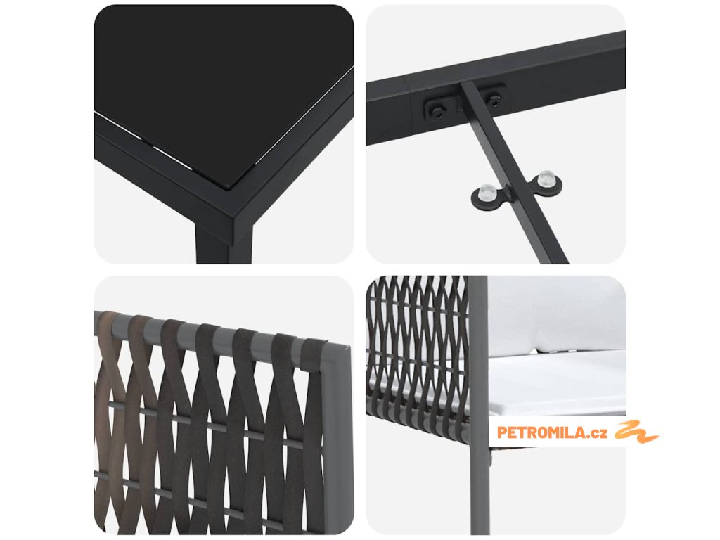 - Funkční vlastnosti: Materiály chrání před UV zářením, čímž zabraňují blednutí a vydrží dlouho na slunci, což udržuje vzhled i strukturu. Čisté linie designu usnadňují údržbu a zajišťují, že set vypadá skvěle bez vynaložení velkého úsilí.