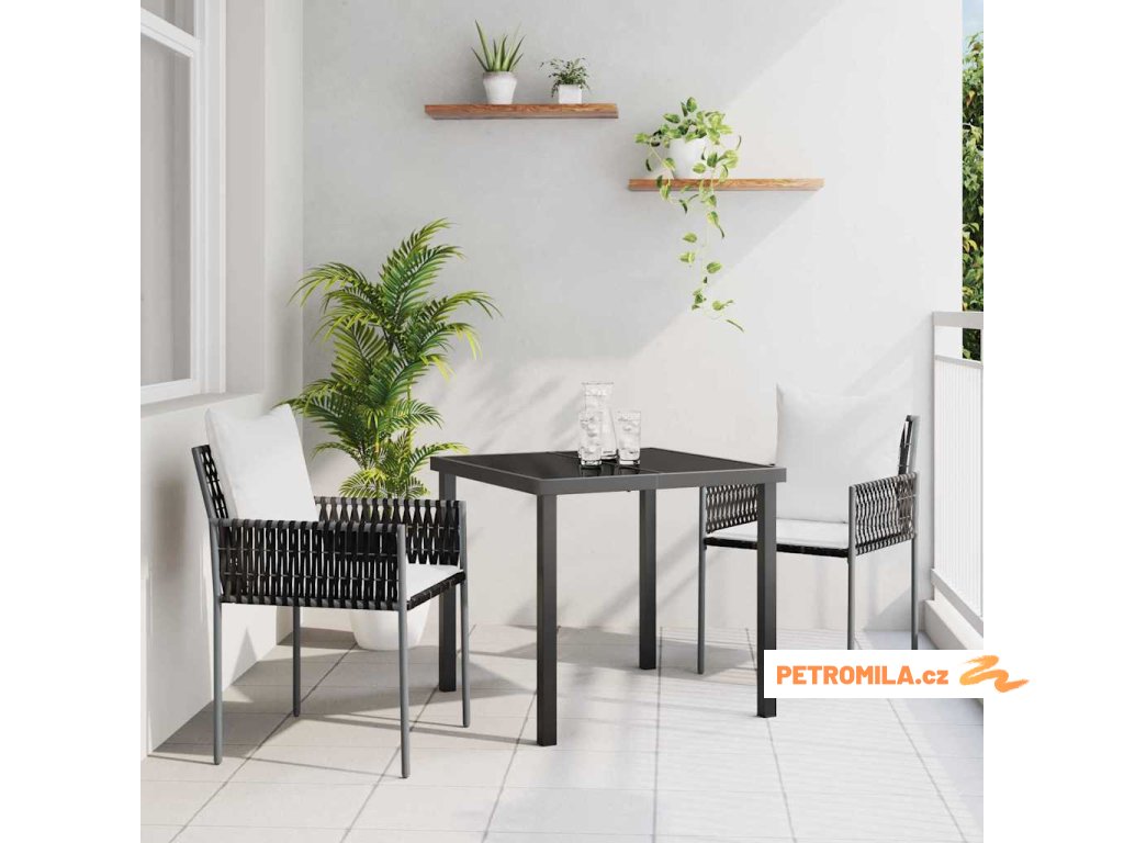 Moderní zahradní jídelní set má jednoduchý a funkční design. Jeho minimalistický vzhled je podtržen elegantní černou barvou. Hodí se na jarní a letní setkání, kde se můžete sejít s rodinou a kamarády. S moderním stylem se set stává hlavním bodem každého venkovního prostoru a poskytuje dost místa pro pohodlné stolování a příjemnou atmosféru.