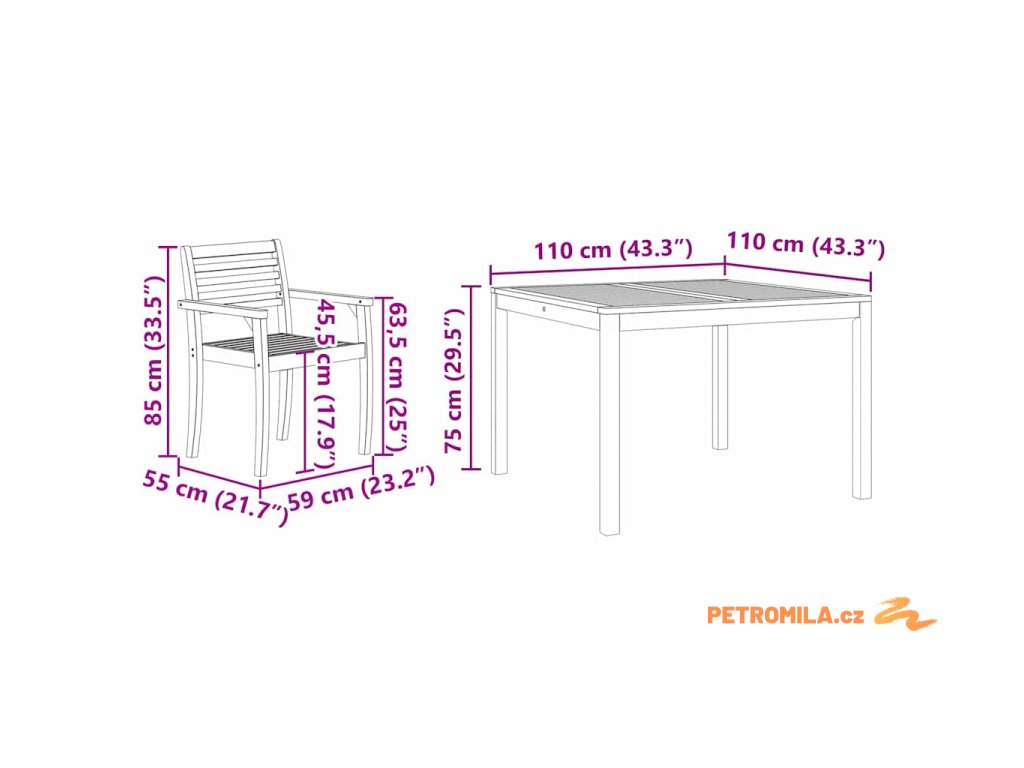 - Masivní akáciové dřevo: Jídelní set je zcela vyroben z masivního akáciového dřeva, které je známé pro svou silnou, hustou strukturu, zajišťující dlouhodobou trvanlivost a vynikající odolnost vůči venkovním podmínkám. Tato robustnost činí set ideálním pro trvalé venkovní používání a zachovává přitom svou přirozenou eleganci.