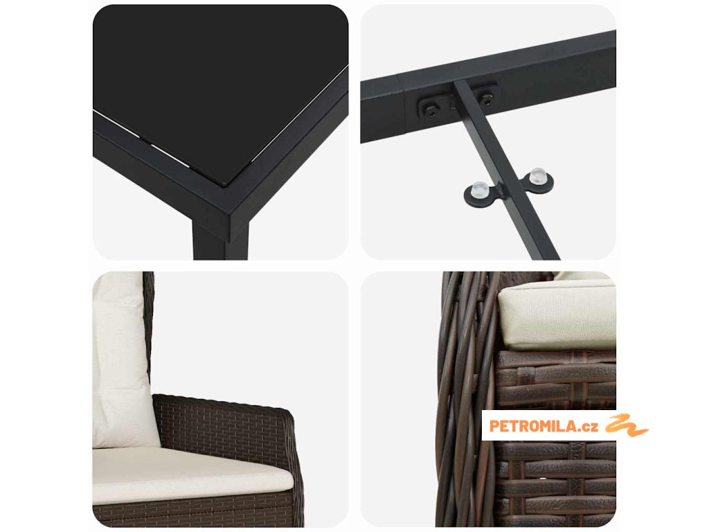 - Maximální Komfort – Ergonomicky navržená poly ratanová opěradla a podpěry na ruce, spolu s nastavitelnými opěradly, ti zajistí maximální pohodlí. Tyto funkce ti umožňují užívat si jídlo venku v pohodlí, což skvěle zapadá do moderního pojetí jednoduchosti a praktičnosti tohoto setu.