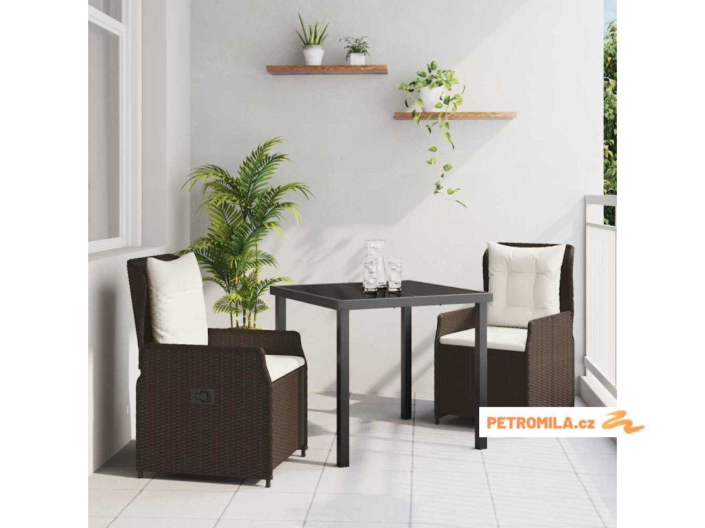Zahradní jídelní souprava 3 pcs Hnědá polyratan