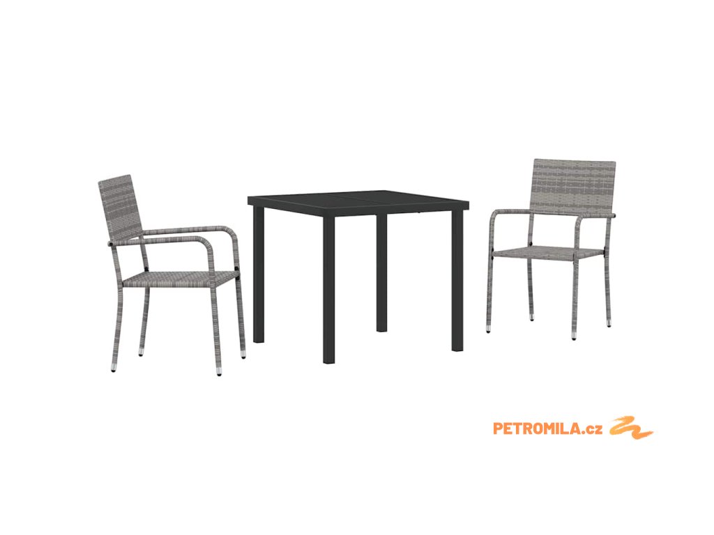 Zahradní jídelní souprava 3 pcs Šedá Poly ratan