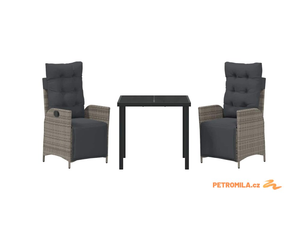 Zahradní jídelní souprava 3 pcs Šedá Poly ratan
