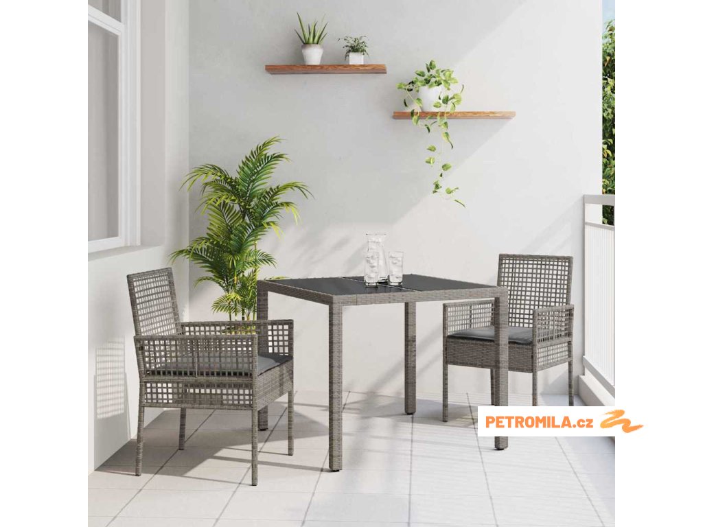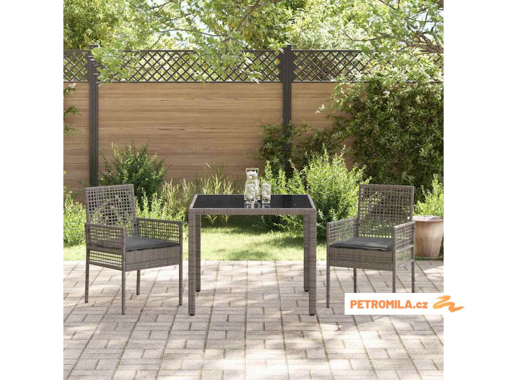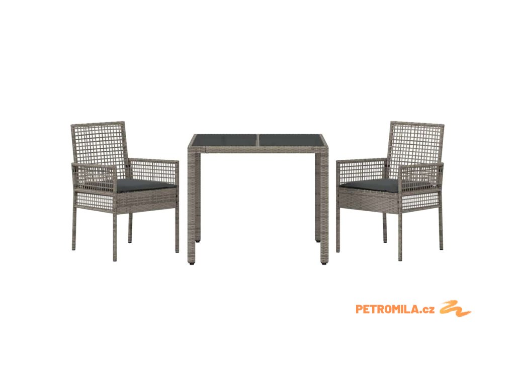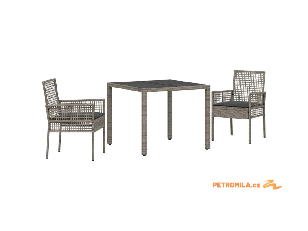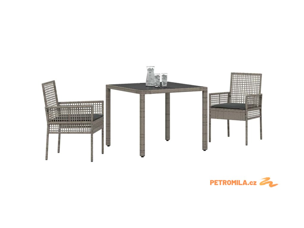 Zahradní jídelní souprava 3 pcs Šedá Poly ratan