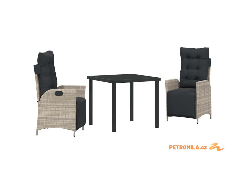 Zahradní jídelní souprava 3 pcs Světle šedá polyratan