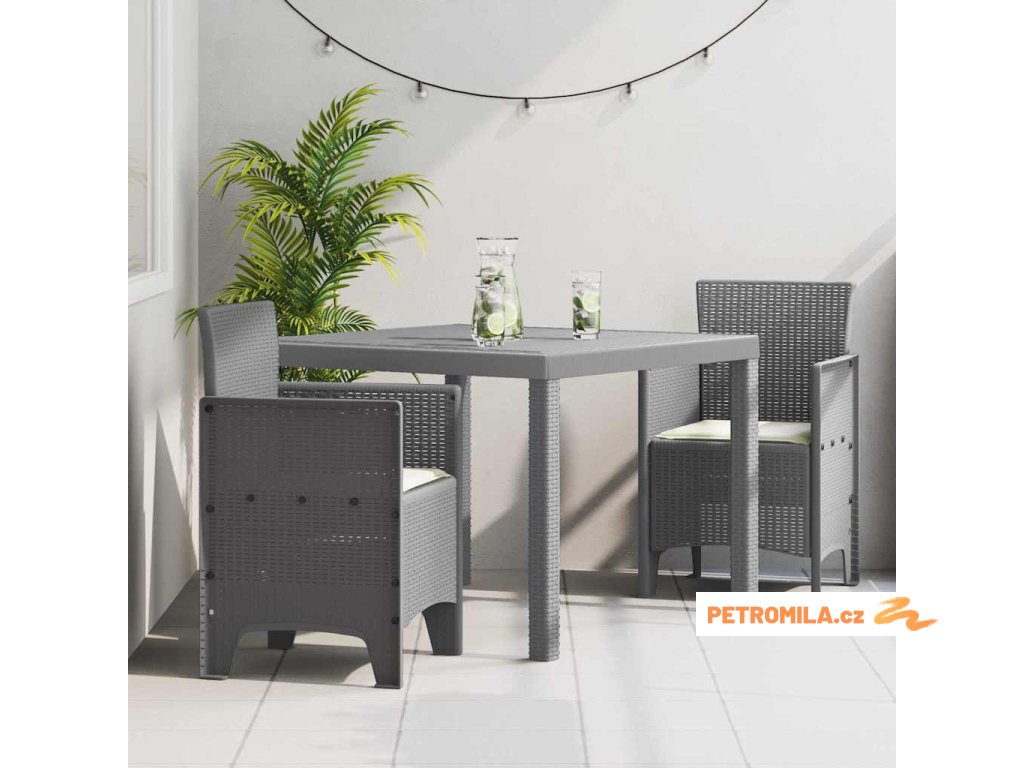 Tento moderní zahradní jídelní set přináší sofistikovanost a funkčnost do různých venkovních prostor. Ideální pro venkovní stolování na terase nebo v zahradě, tento set spojuje elegantní linie s texturovaným povrchem, aby poskytl stylový zážitek při jídle. Skvělý pro letní setkání a venkovní stolování, tento set nabízí pohodlí a pohodlné posezení, včetně polštářů pro každý sedák. Čtvercový stůl a odpovídající židle snadno doplní moderní designy, poskytují elegantní a zároveň neformální prostředí pro rodinné jídla nebo společenská setkání.