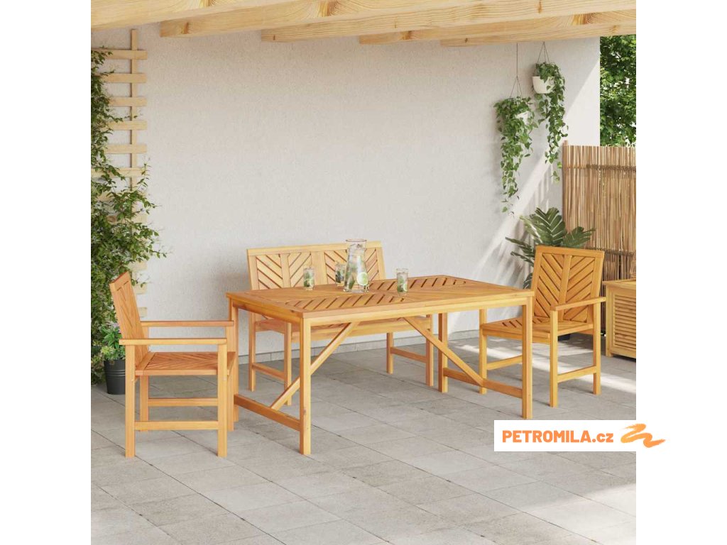 - Kvalitní materiály: Vyrobeno z masivního akáciového dřeva, tenhle set je pevný a vypadá skvěle. Akácie je známá svojí krásnou strukturou a zvládá různé venkovní podmínky, což ji dělá ideální pro každodenní používání. Tento materiál dodává rustikální nádech, ale je dostatečně odolný pro venkovní využití.