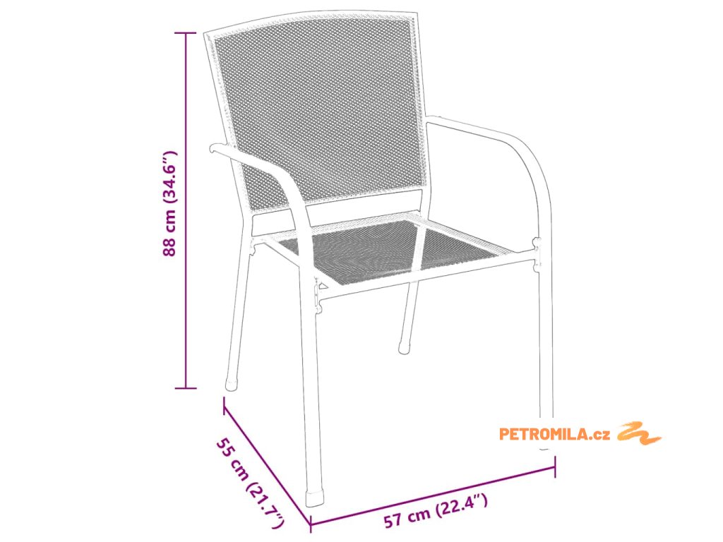 - Chytrý design: Každá židle je stohovatelná s ohledem na pohodlí a využití prostoru. Tyto židle mají ergonomické ocelové opěradla pro větší podporu a opěrky rukou jsou potaženy pro pohodlné používání. Pevný ocelový rám zaručuje stabilitu, což znamená, že se na tento set můžeš spolehnout při mnoha nezapomenutelných venkovních jídelních zážitcích.