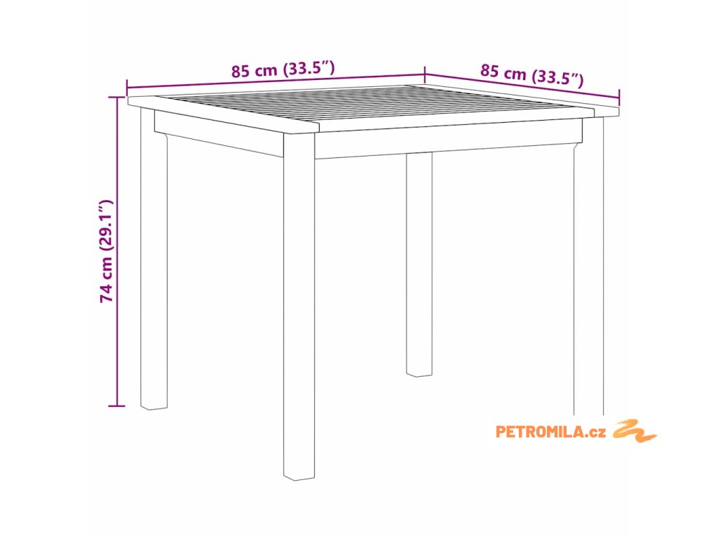 - 1 x Stůl: 85 x 85 x 74 cm (D x Š x V)