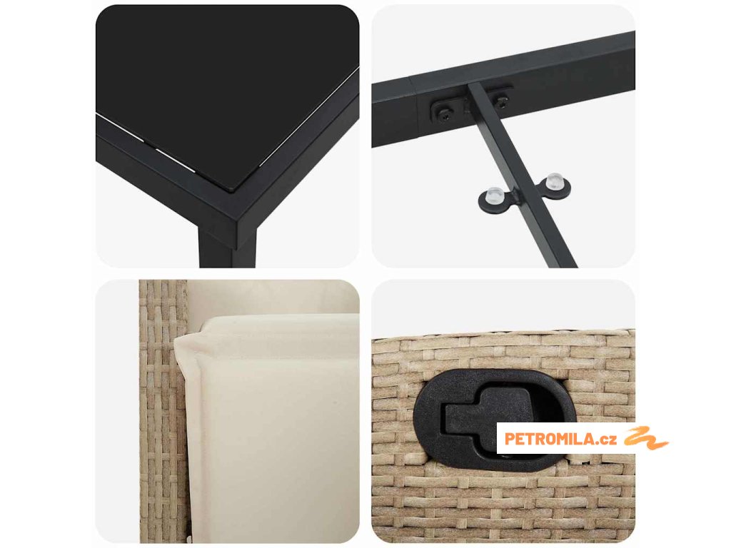 - Všestranný použití: Navržený pro venkovní aktivity, tenhle set povyšuje tvoje setkání na zahradě nebo terase, hodí se jak pro neformální, tak formální příležitosti. Jeho moderní vzhled dodá šmrnc každému prostoru a postará se o pohodlí.