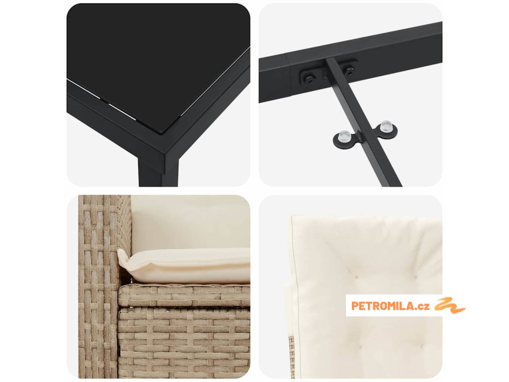 Sada zahradních pohovek s polštářem 8 pcs Béžová Poly ratan