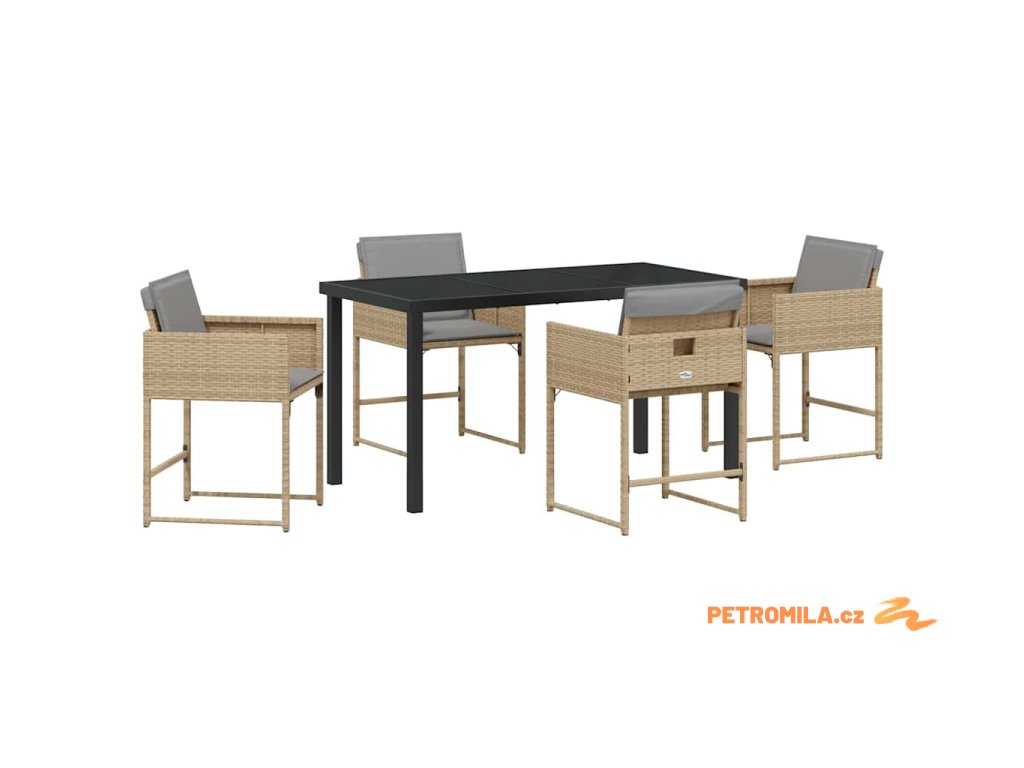 Zahradní jídelní souprava 5 pcs Béžová polyratan
