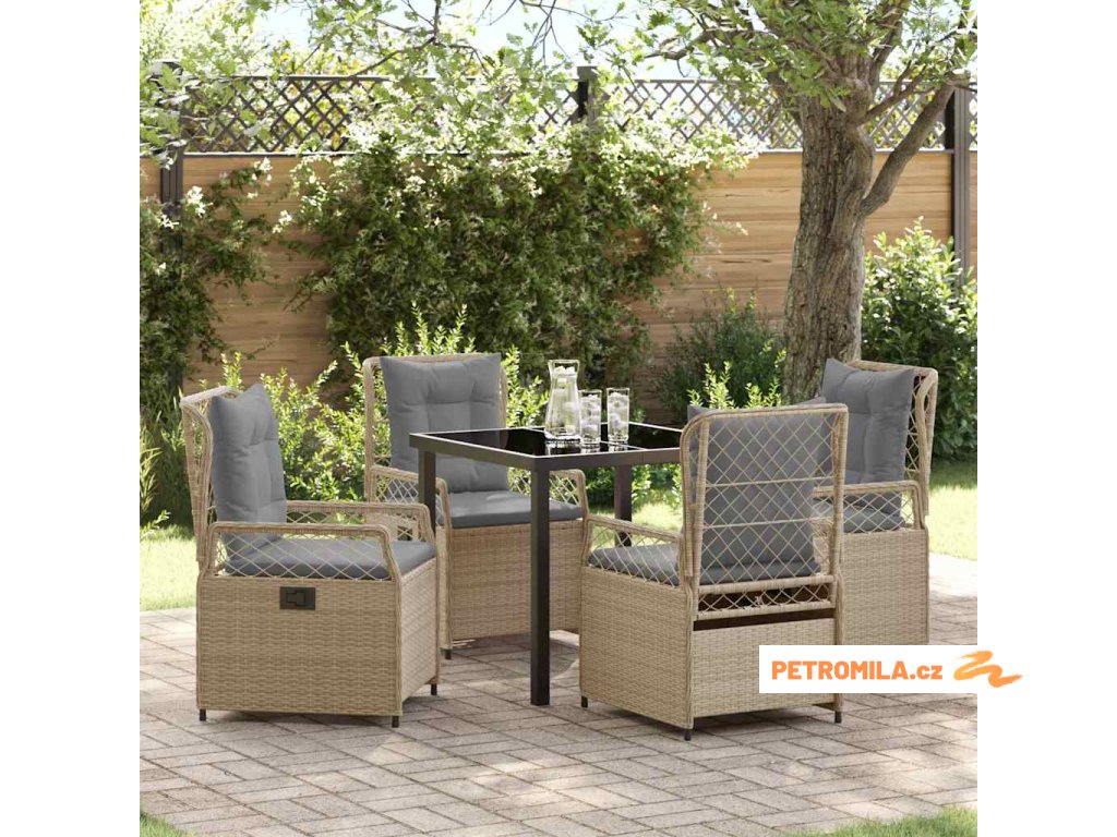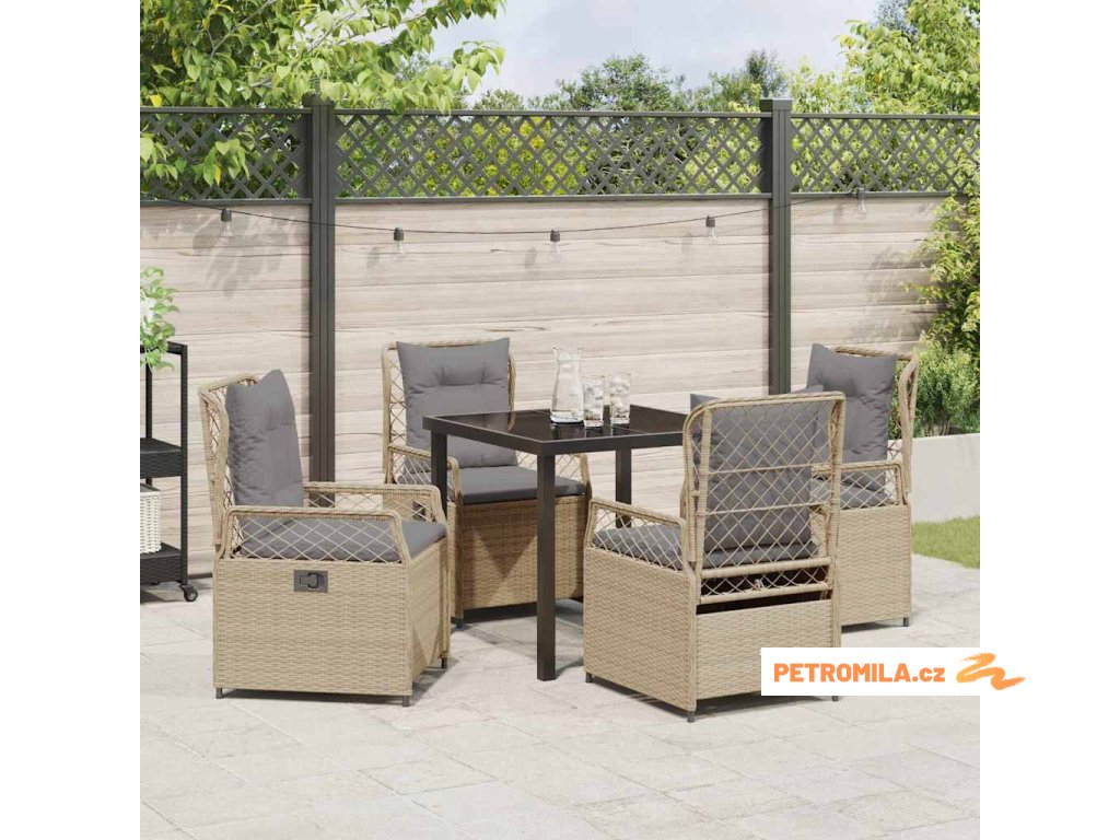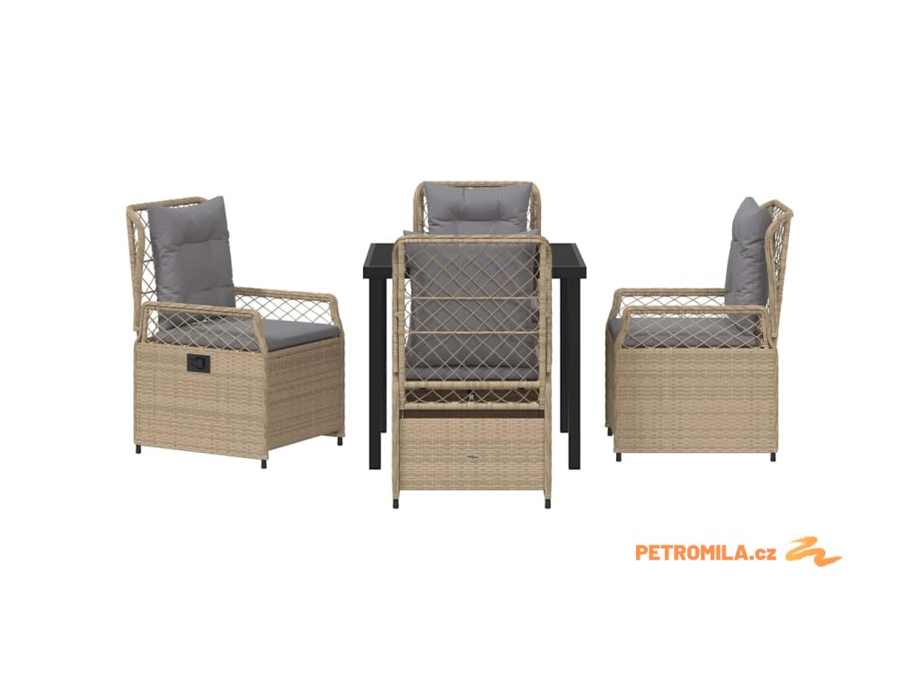 Zahradní jídelní souprava s polštářem 5 pcs Béžová Poly ratan