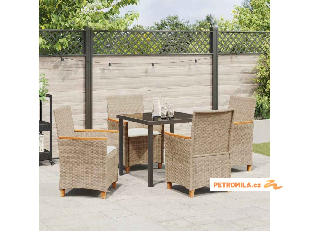 Zahradní jídelní souprava 5 pcs Béžová polyratan