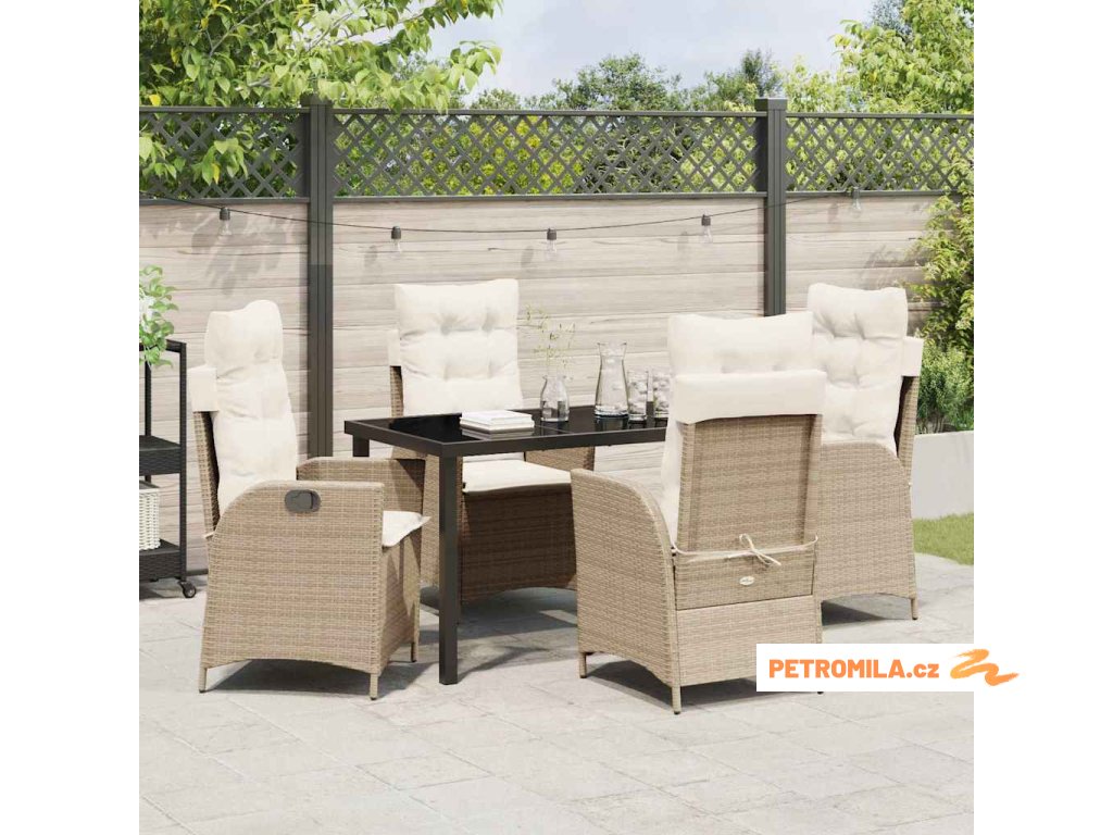 Zahradní jídelní souprava s polštářem 5 pcs Béžová Poly ratan