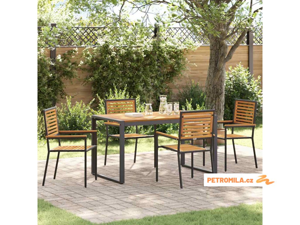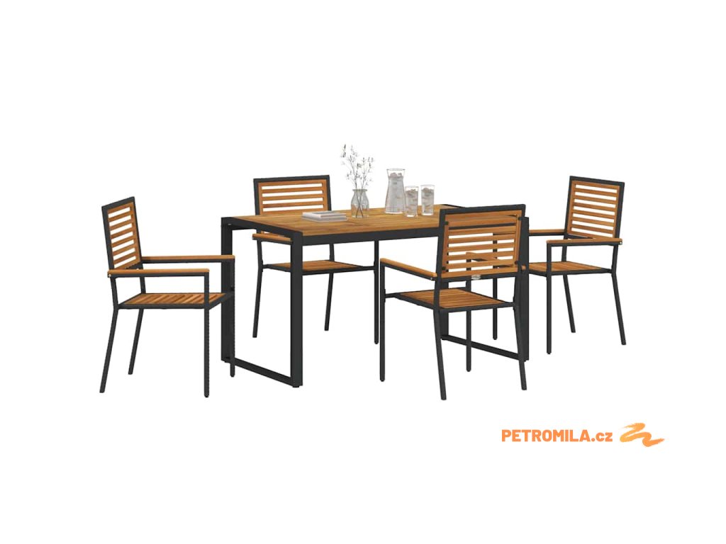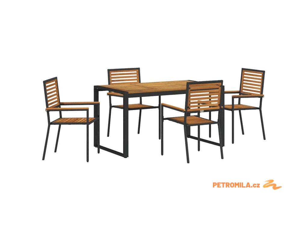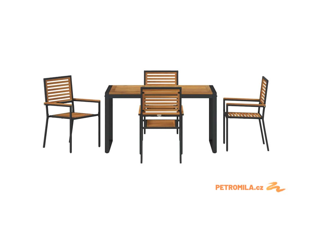 Zahradní jídelní souprava 5 pcs Černá a Dřevo 140 x 80 x 75 cm