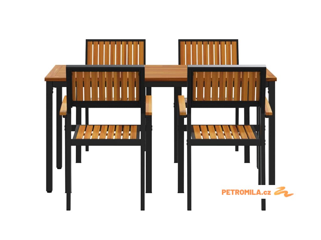 - Součásti: Set obsahuje prostorný stůl a kvalitní židle, z nichž každá má akáciové opěrky. Jsou navržené pro pohodlí, takže si tvoji hosté můžou dát nohy nahoru a užívat si pokecání.