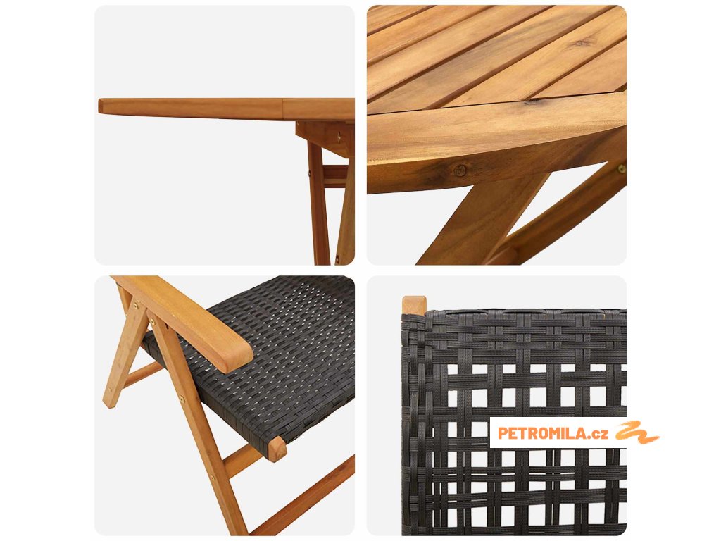 - Funkce/Design: Tato souprava má nastavitelné sklápěcí mechanismy. Díky tomu je flexibilní volba pro místa, kde se hodí skladování. Snadno se sklopí pro transport nebo při ukládání, když ji nepoužíváš, a její moderní vzhled je fajn bonus.
