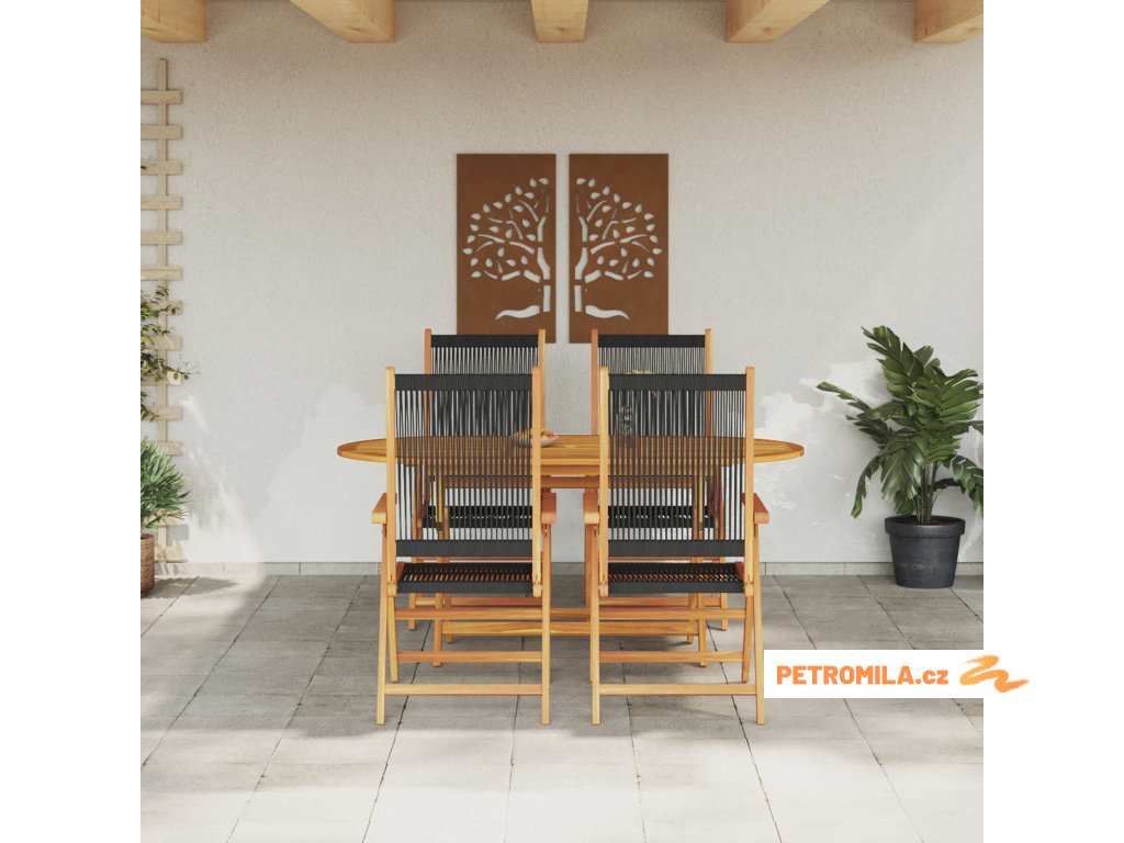 - Masivní akáciové dřevo: Hlavní materiál tohoto jídelního setu, masivní akáciové dřevo, je známé pro svoji bohatou barvu i robustnost. Jeho přirozené vlastnosti z něj činí ideální materiál pro venkovní prostředí a zajišťuje dlouhou životnost při různých povětrnostních podmínkách. To vše zaručuje dlouhou životnost s minimálními kompromisy v estetice.