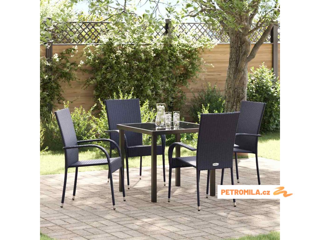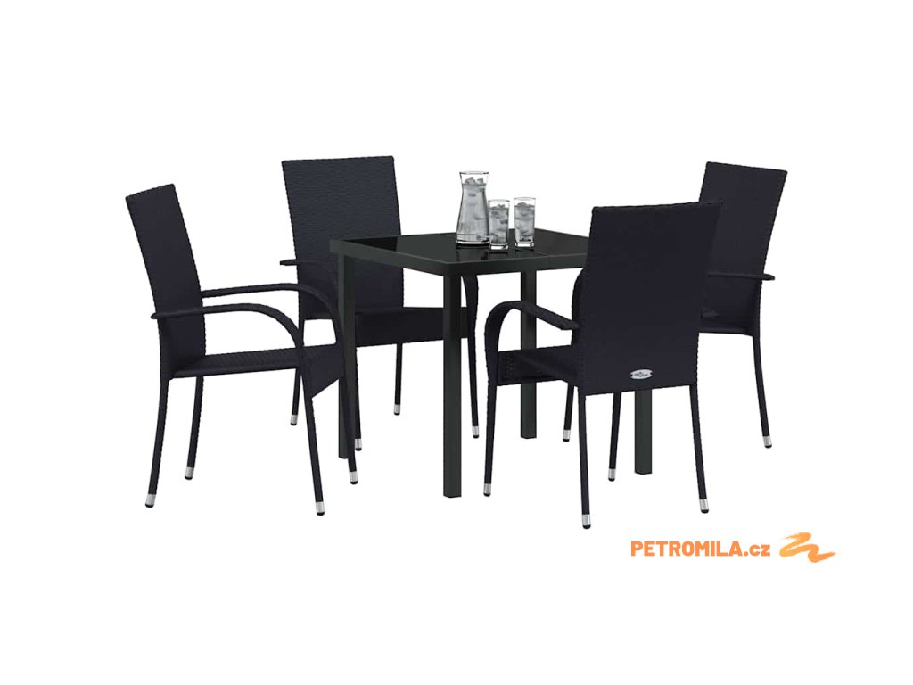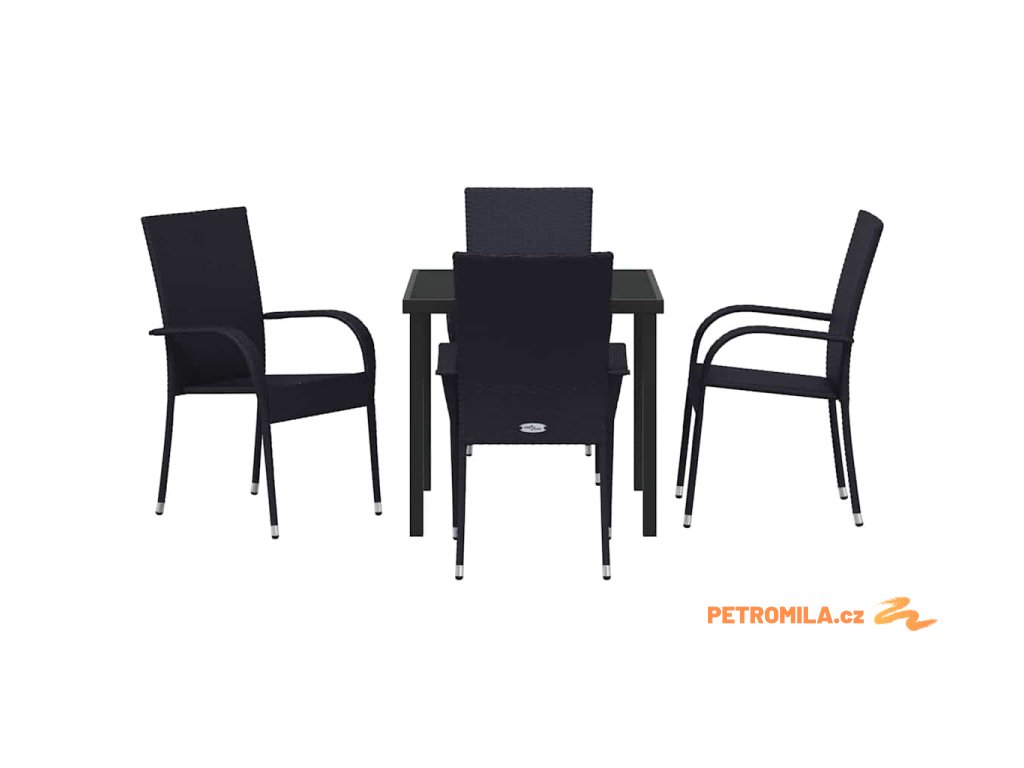 Zahradní jídelní souprava 5 pcs Černá Poly ratan