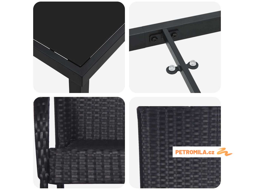 Tahle zahradní nábytková sada přináší moderní eleganci do vašeho venkovního prostoru. Je navržená tak, abyste si mohli pohodlně posedět venku, spojuje styl s praktičností. Moderní vzhled se skvěle hodí na balkóny, terasy nebo do zahrad a dodává jim elegantní atmosféru. Pozvěte kámošky a rodinu a užijte si jídlo, povídání nebo prostě jen relaxaci na slunci nebo pod hvězdami.