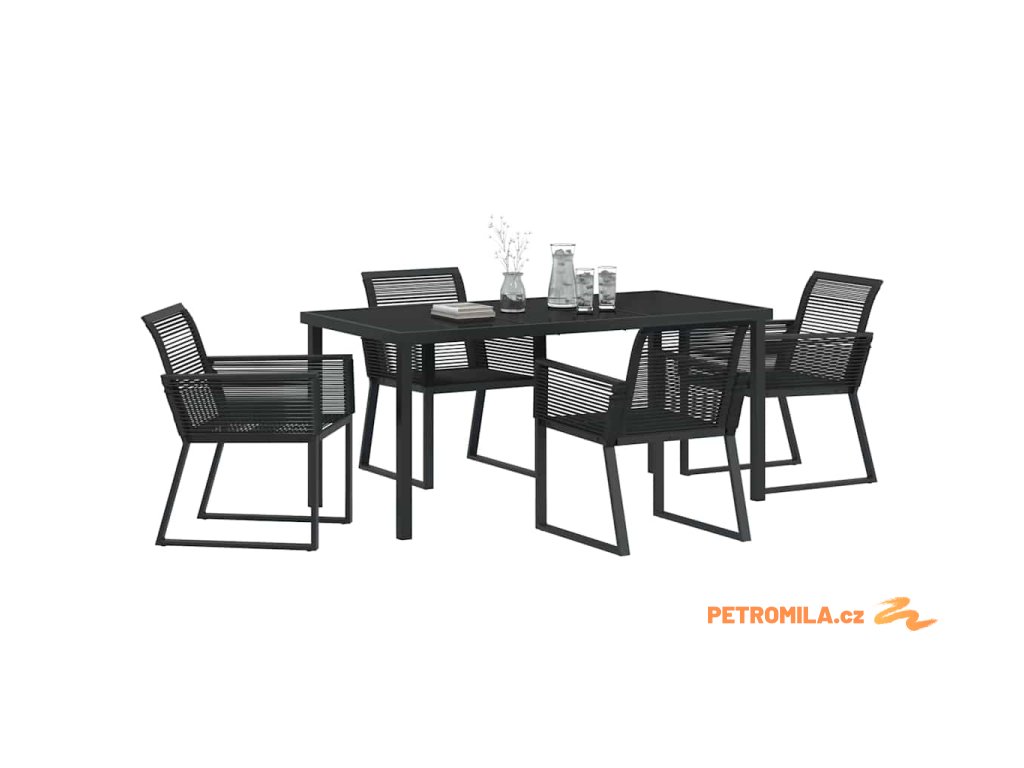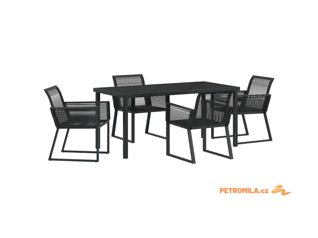 Zahradní jídelní souprava 5 pcs Černá Poly ratan