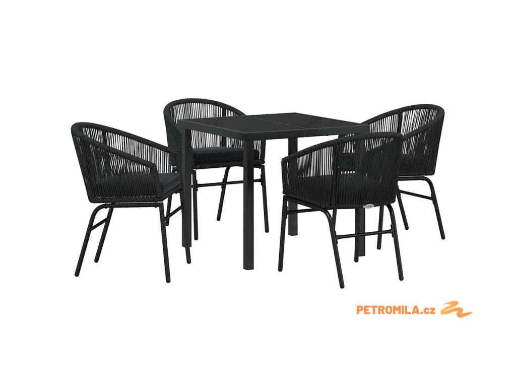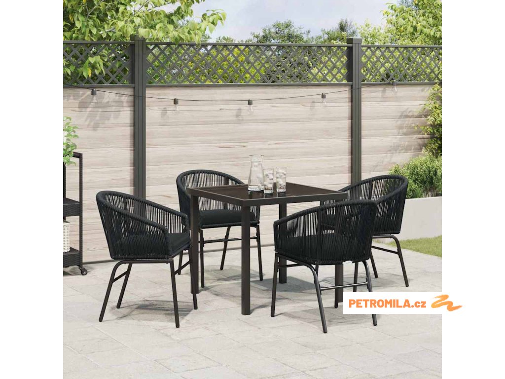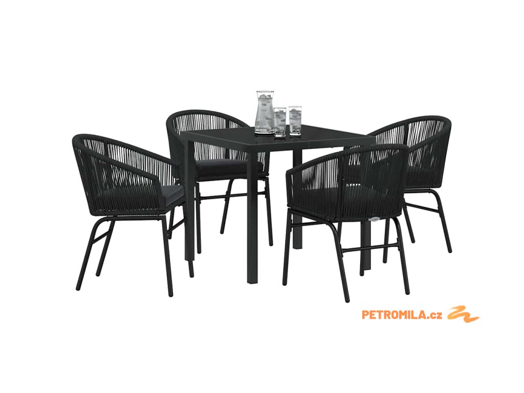 Zahradní jídelní souprava 5 pcs Černá Poly ratan