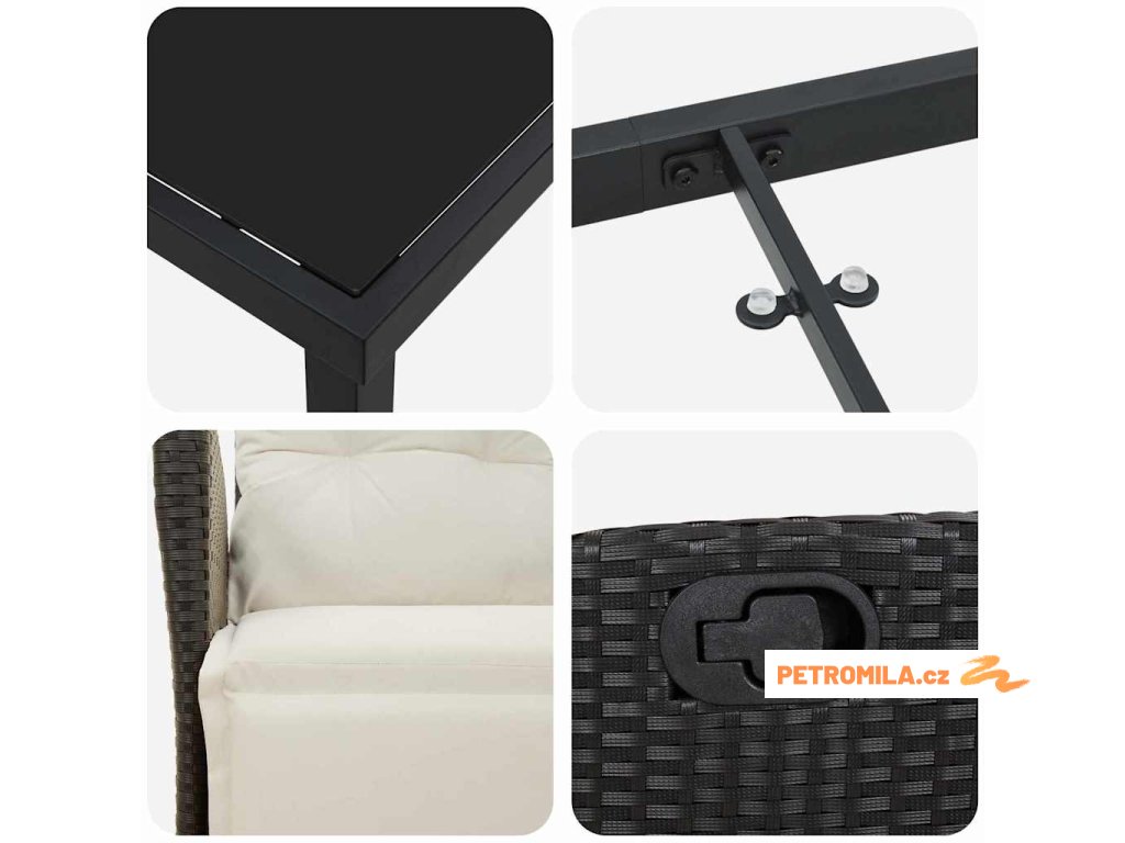 - Prémiové materiály: Vyrobené z poly ratanu a práškově lakované oceli, ta souprava vydrží různé počasí a je fakt trvanlivá. Poly ratan má hezkou tkanou texturu, ideální na venkovní použití, a práškově lakovaná ocel poskytuje pevný rám, který zvládne všechny roční období.