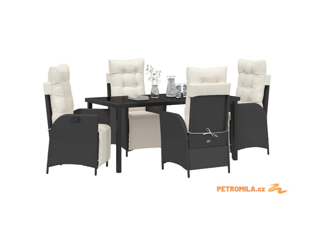 Zahradní jídelní souprava 5 pcs Černá Poly ratan