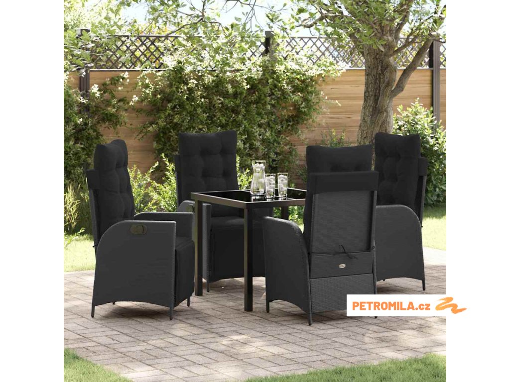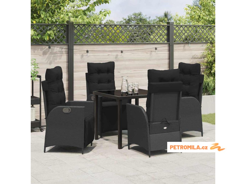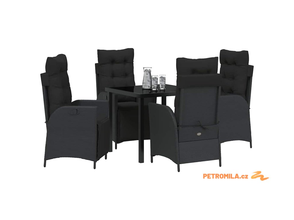 Zahradní jídelní souprava 5 pcs Černá Poly ratan