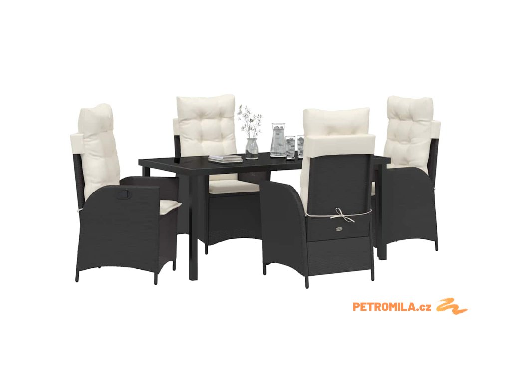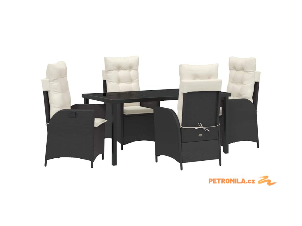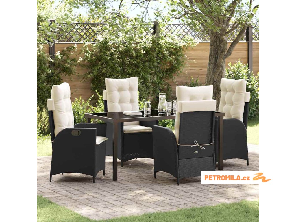 Zahradní jídelní souprava 5 pcs Černá polyratan
