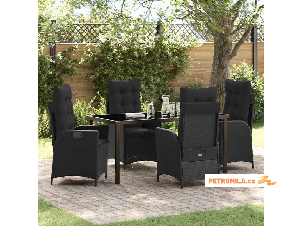 Zahradní jídelní souprava 5 pcs Černá polyratan