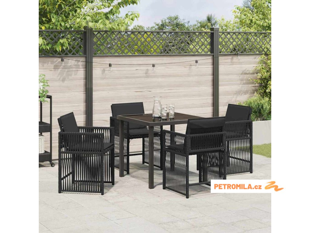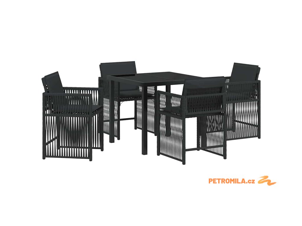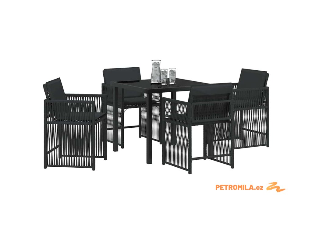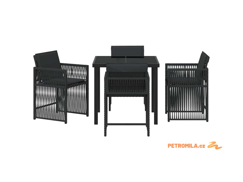 Zahradní jídelní souprava 5 pcs Černá polyratan