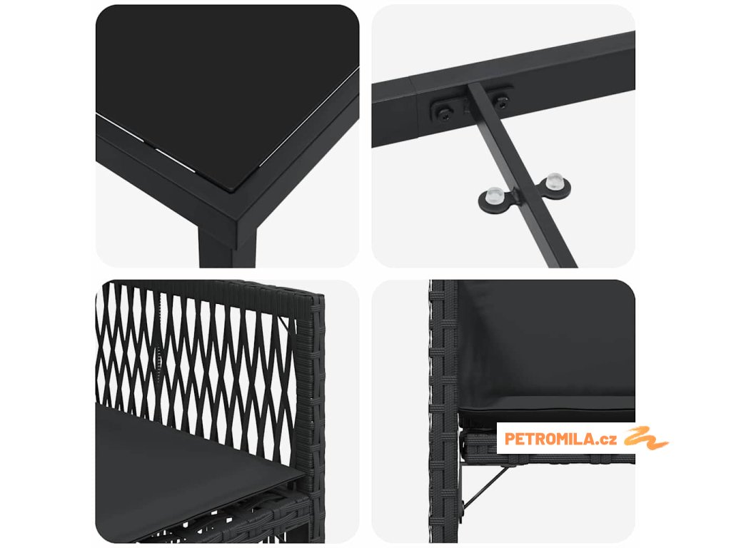 - Součásti: Sada obsahuje elegantní skleněný stůl, suitable for co se snadno čistí po jídle. Má pohodlná opěradla a opěrky z poly ratanu navržené pro lepší oporu během uvolněných večeří. Pevné nohy ti zaručí stabilitu na různých površích, zatímco měkké polyesterové výplně přidávají pohodlí během každého jídla.