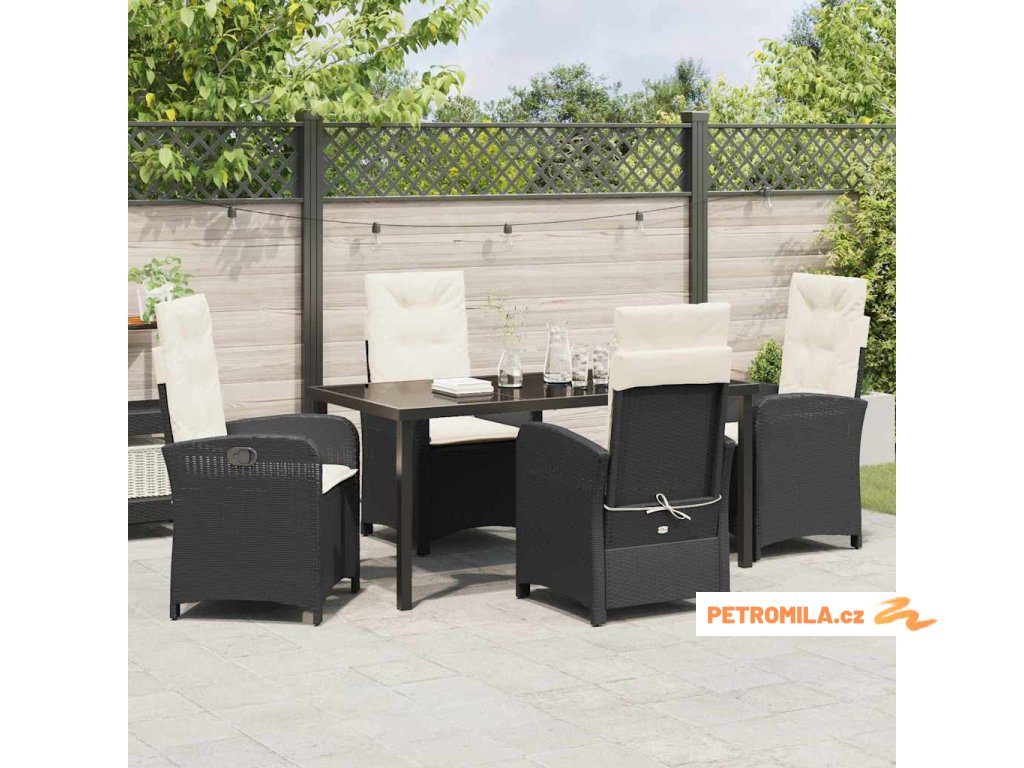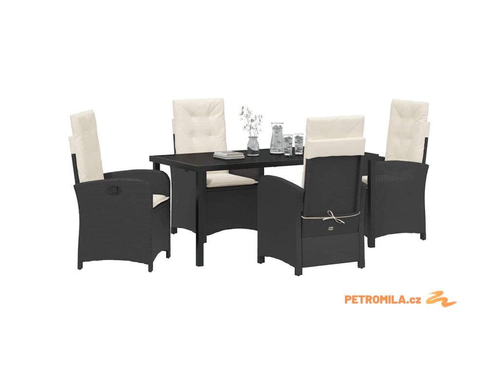 Zahradní jídelní souprava 5 pcs Černá polyratan