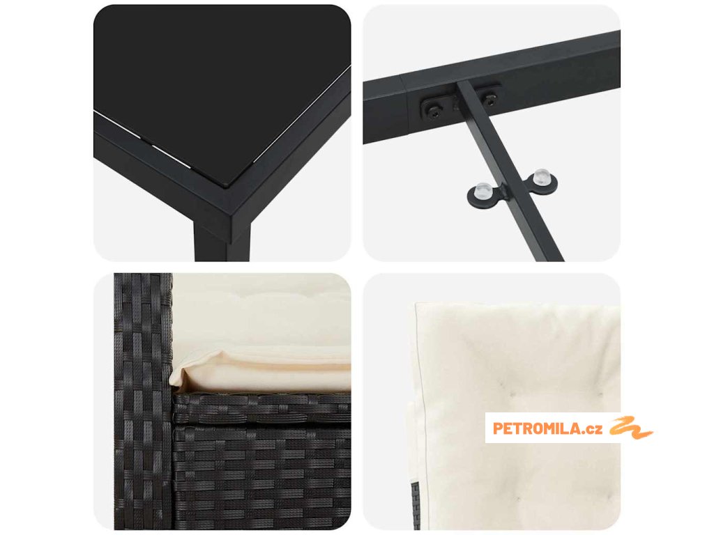 - Odolná podpora ocelového rámu: Set je postaven na silném ocelovém rámu, který zajišťuje pevnou podporu. Ocel je známá svou trvanlivostí, takže je tento nábytek dostatečně odolný na pravidelné používání. Minimalistický design se skvěle hodí k modernímu vzhledu.