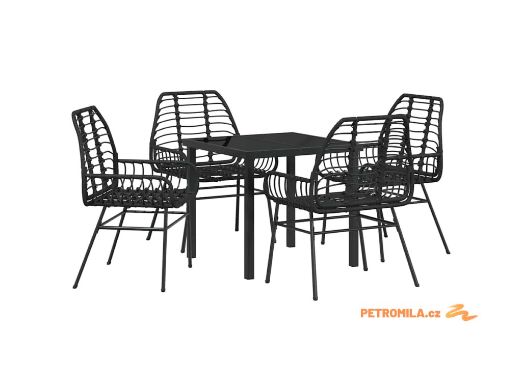 Zahradní jídelní souprava 5 pcs Černá polyratan