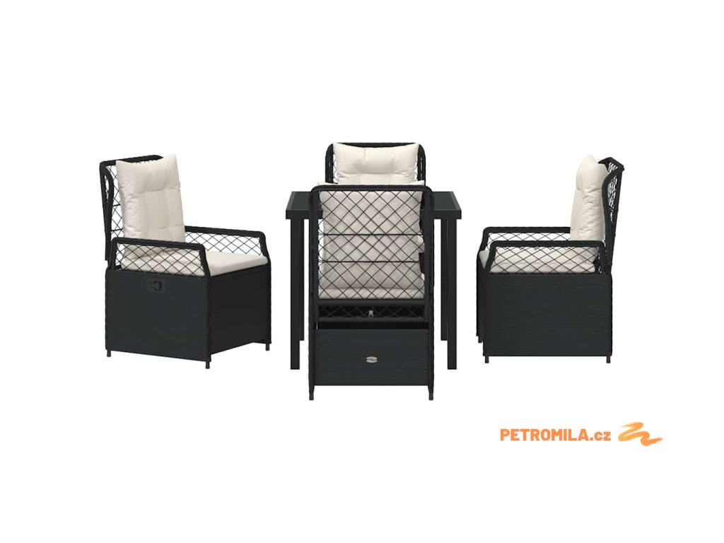 Zahradní jídelní souprava 5 pcs Černá polyratan