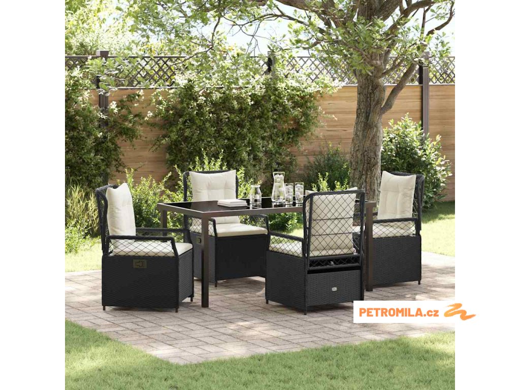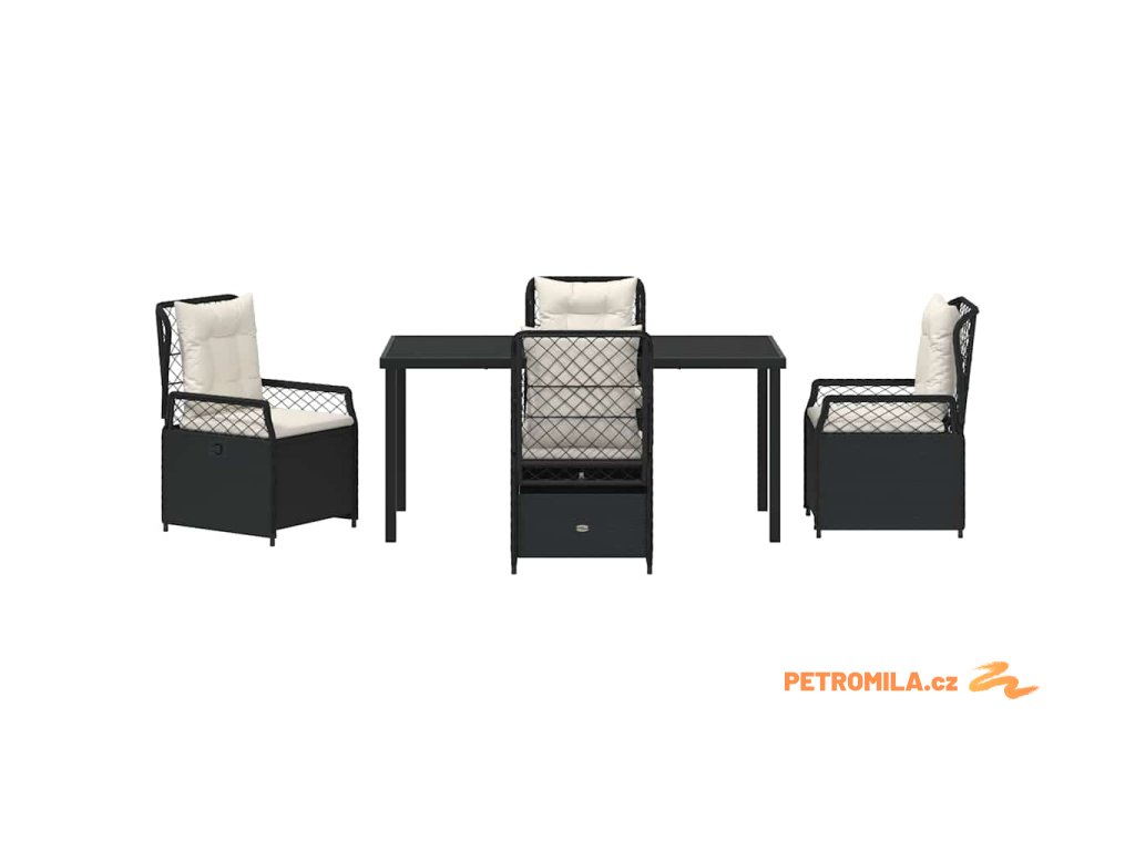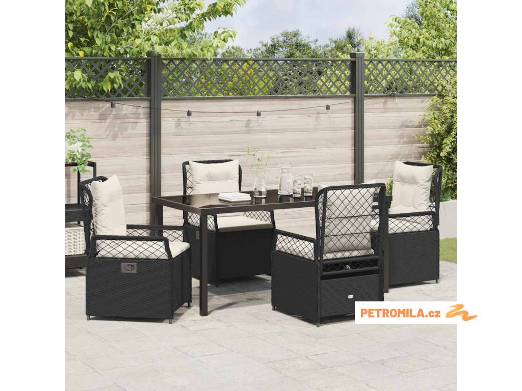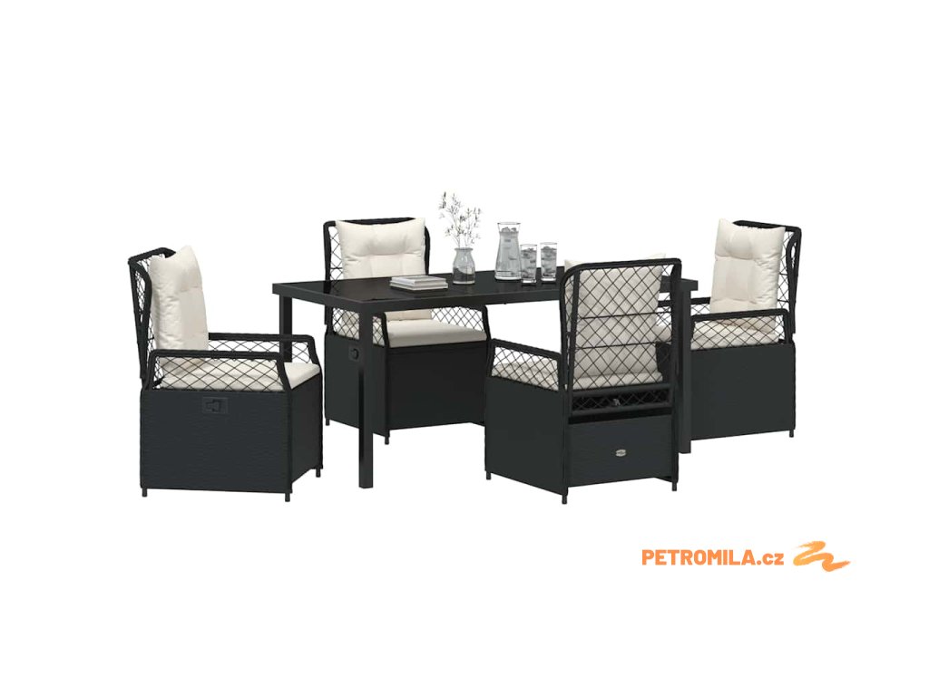Zahradní jídelní souprava 5 pcs Černá polyratan