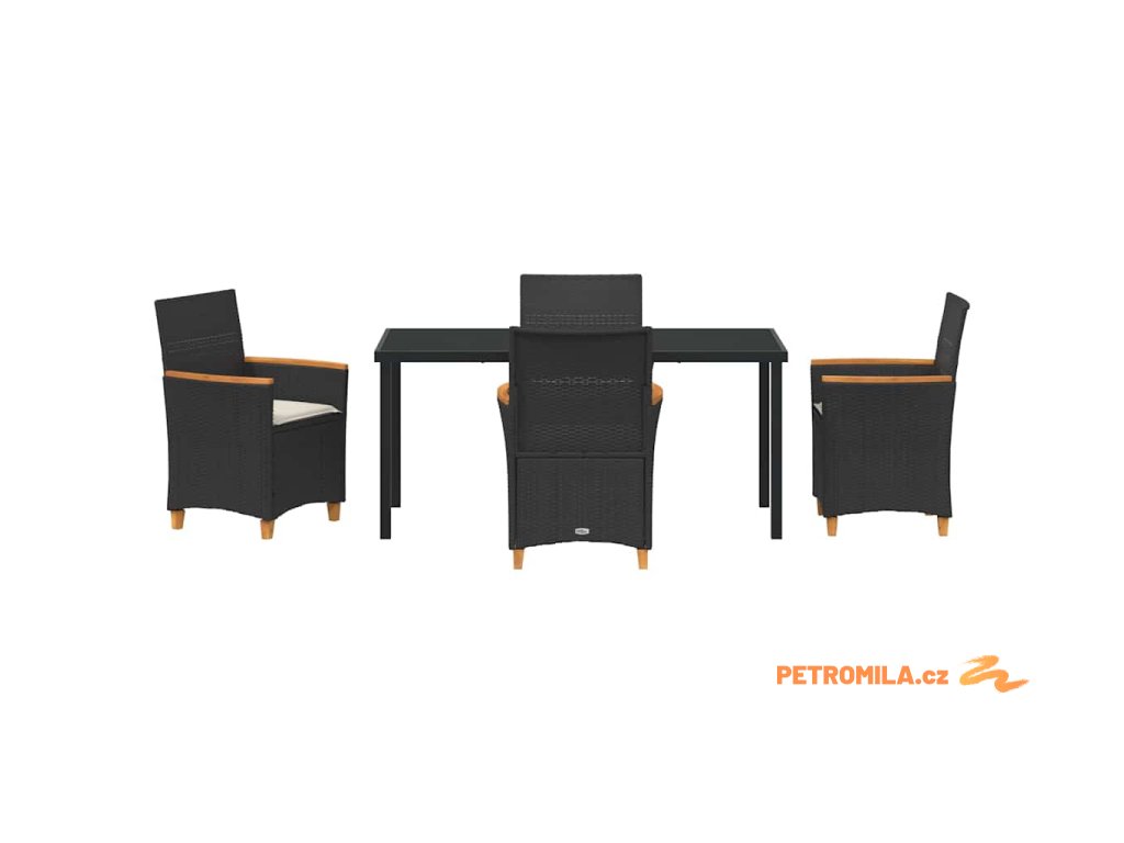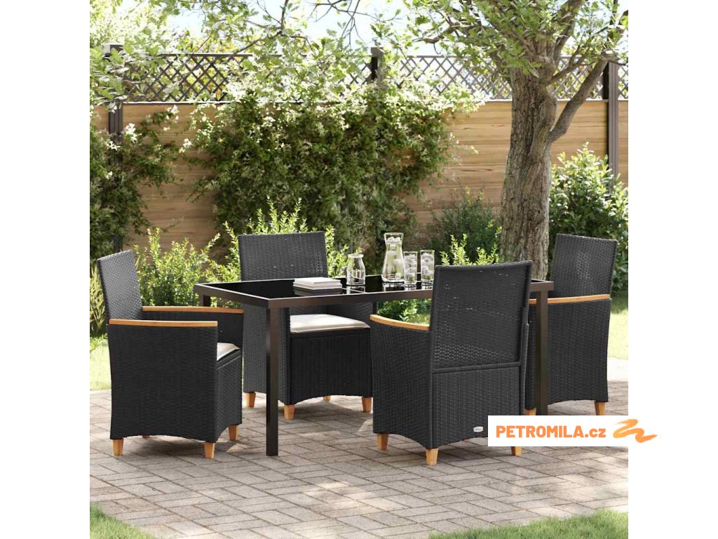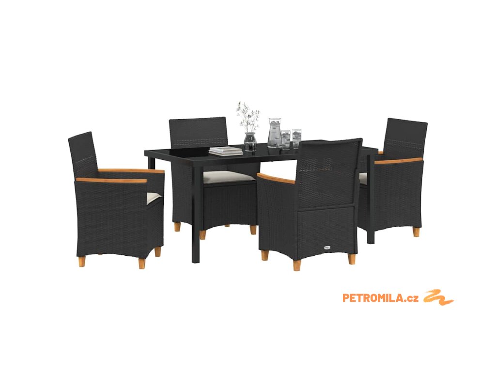 Zahradní jídelní souprava 5 pcs Černá polyratan
