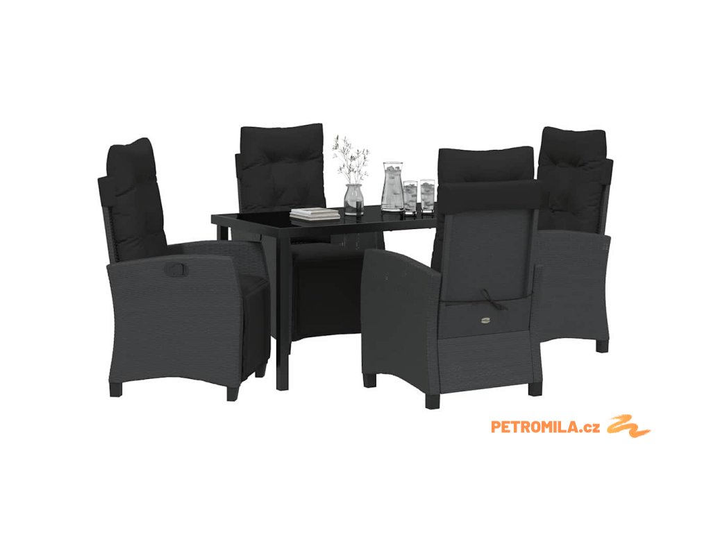 Zahradní jídelní souprava 5 pcs Černá polyratan