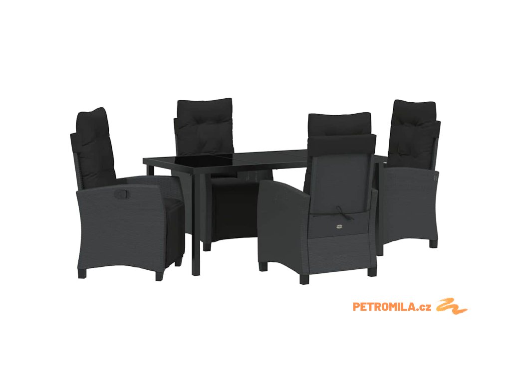 Zahradní jídelní souprava 5 pcs Černá polyratan