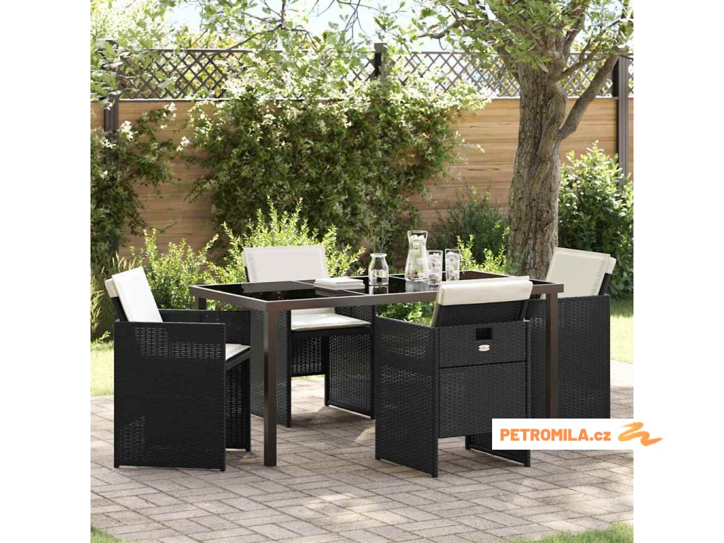 Zahradní jídelní souprava 5 pcs Černá polyratan