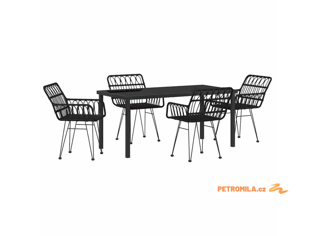 Zahradní jídelní souprava 5 pcs Černá Práškově lakovaná ocel