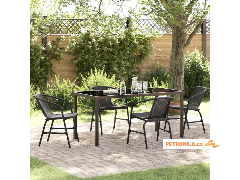 Tato moderní zahradní jídelní sada je ztělesněním elegance a funkčnosti. Má super štíhlý rám z černé práškově lakované oceli a skvěle zapadne do jakékoli zahrady nebo na terasu. Je skvělá na neformální odpočinek nebo formální akce. Její hezký design a styl dělají z této sady středobod pro setkání s rodinou a přáteli, s minimalistickými liniemi, které z ní dělají atraktivní kousek.