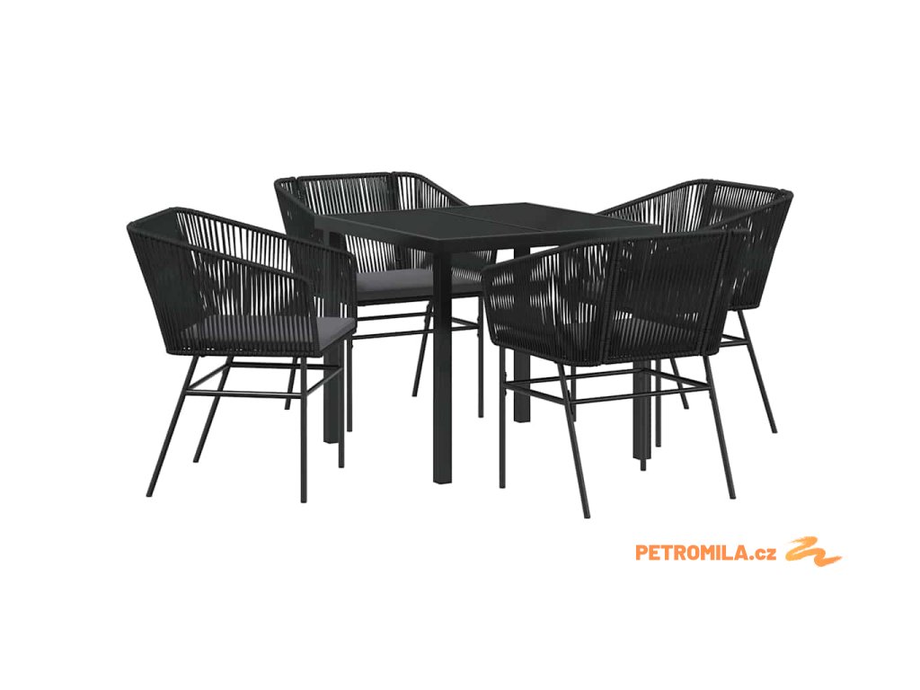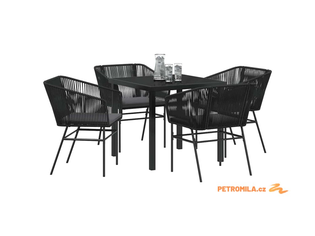 Zahradní jídelní souprava 5 pcs Černá Práškově lakovaná ocel