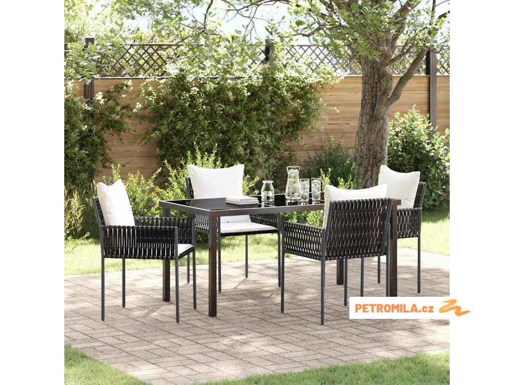 Moderní zahradní jídelní set má jednoduchý a funkční design. Jeho minimalistický vzhled je podtržen elegantní černou barvou. Hodí se na jarní a letní setkání, kde se můžete sejít s rodinou a kamarády. S moderním stylem se set stává hlavním bodem každého venkovního prostoru a poskytuje dost místa pro pohodlné stolování a příjemnou atmosféru.