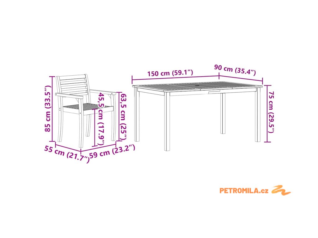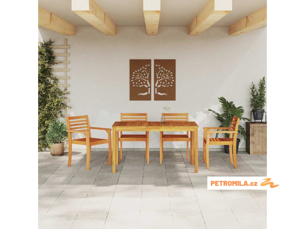 - Materiály: Vyrobeno z masivního akáciového dřeva, tenhle nábytek je odolný a navržený tak, aby vydržel venku. Akácie je známá tím, že odolává hnilobě a rozkladu, což zajišťuje dlouhou životnost. Olejovaný povrch zvýrazňuje přirozenou barvu dřeva, čímž se stává jak funkčním, tak hezkým doplňkem do každé zahrady nebo terasy.