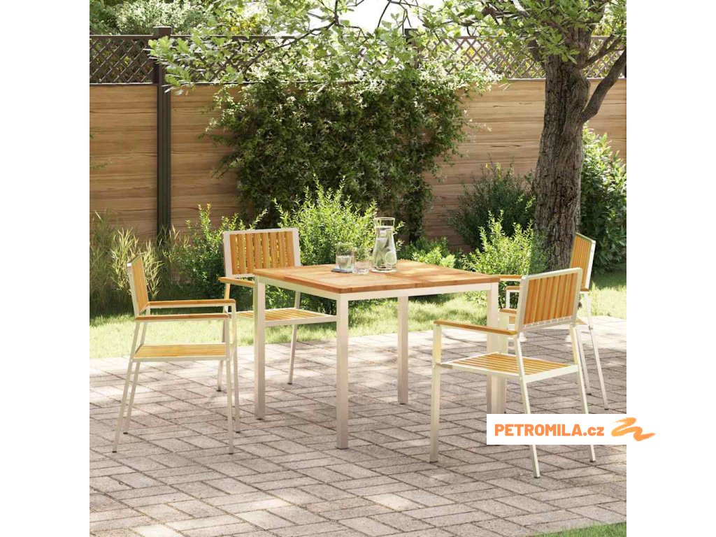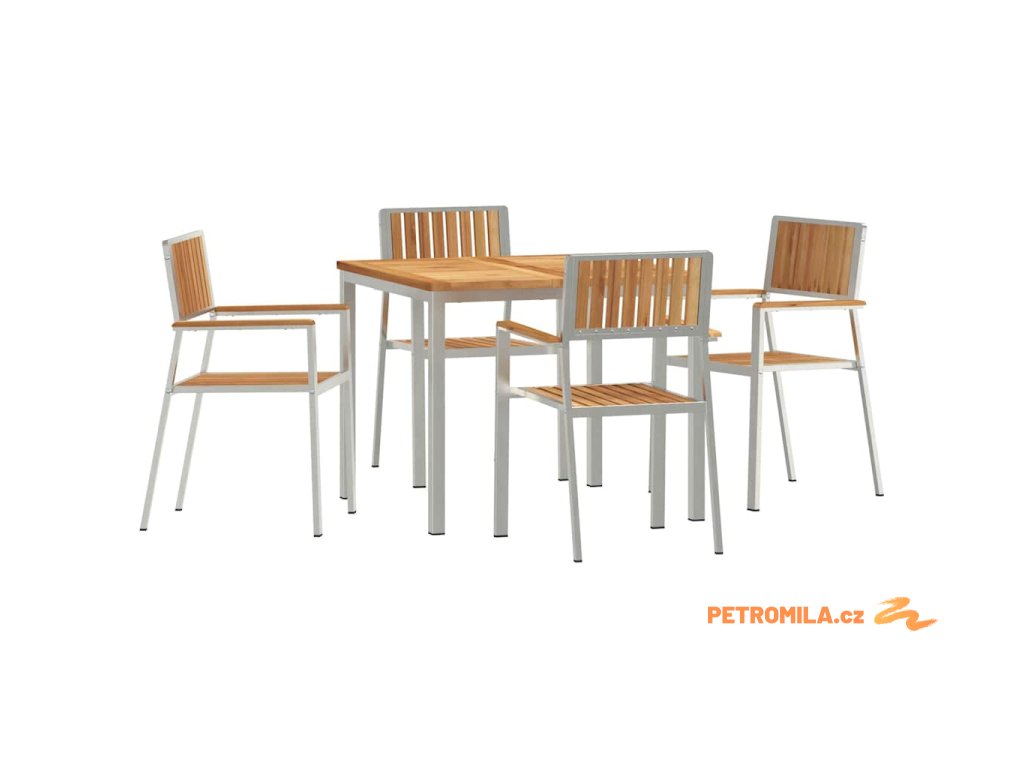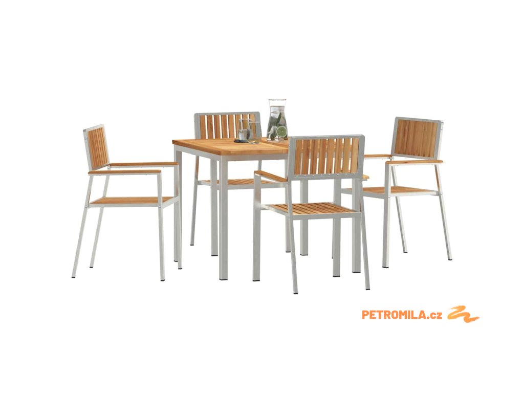 - Rám z nerezové oceli: Tento zahradní jídelní set má pevný rám z nerezové oceli, což zajišťuje stabilitu a odolnost venku. Materiál zvládá vlhké podmínky, takže je to váš spolehlivý parťák pro venkovní jídla. Nerezová ocel vypadá skvěle a zároveň je funkční a stylová.